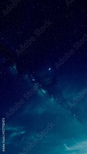 © jpg,png,eps stock, Fototapeta premium Vast starry night sky with crescent moon and milky way galaxy