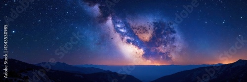 Naklejka premium Vast starry night sky with Milky Way and galaxies , galaxy clusters, darkness