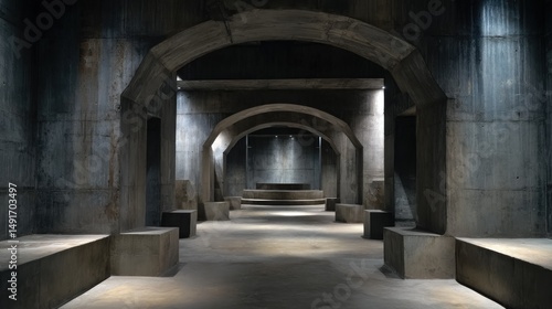 © ULFAITA, Obraz premium Vast, subterranean concrete passageway