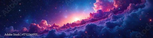 Naklejka premium Vast, swirling nebulae painted across a deep azure sky, cosmic dust and gas...