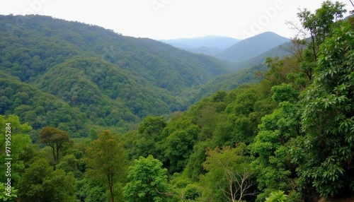 © vivekFx, Obraz premium Vast verdant forest under a clear sky