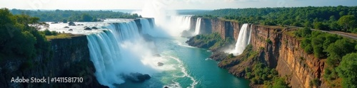 © Pat, Fototapeta premium Vast Zambezi River cascading over Victoria Falls, aerial view, eco, overview