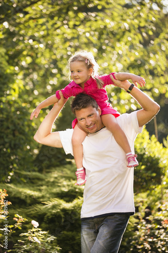 Fototapeta premium Vater trägt Tochter auf den Schultern