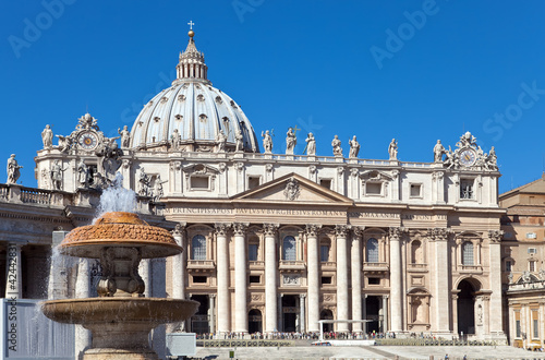 © Konstantin Kulikov, Fototapeta premium Vatican. A fountain before St. Peter's Cathedral