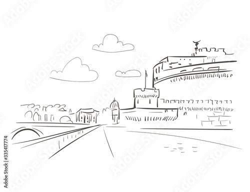 © CharlieNati, Obraz premium Vatican City Europe vector sketch illustration line art