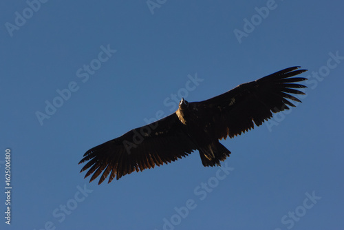 Naklejka premium Vautour moine en vol dans le ciel bleu des Baronnies provençales dans la Drôme