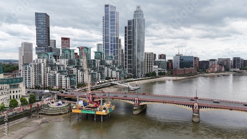 Fototapeta premium .Vauxhall Bridge London UK drone,aerial , floating work platform