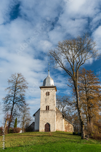 © Bargais, Fototapeta premium Vecpils Catholic church in sunny autumn day, Latvia.
