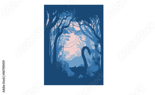 © Save Jungle, Naklejka premium vectoe rainforest jungle illustration with ring-tailed lemur