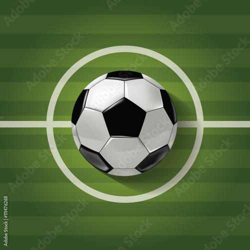 Obraz premium Vector A soccer ball on a green stripped soccer filed texture.