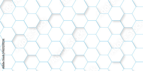 © armans, Naklejka premium Vector abstract banner design with hexagons background. Hexagon geometric shapes pattern. Technology frame for design element futuristic honeycomb cell white background.