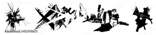 Fototapeta premium Vector Abstract black brushstroke clusters create dynamic elements.