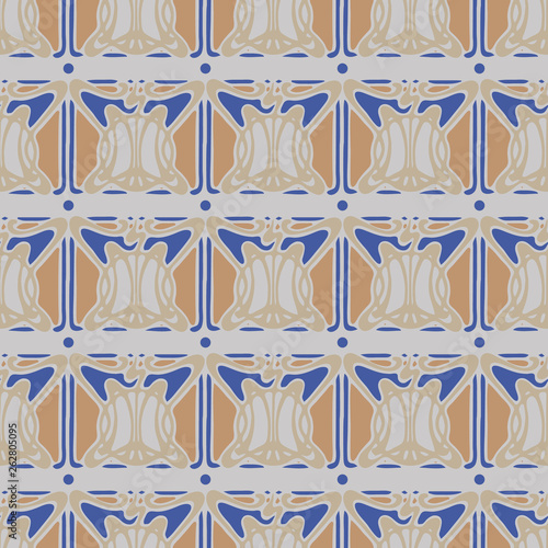 © Aleks, Fototapeta premium Vector abstract colored square floral Art Nouveau style seamless pattern