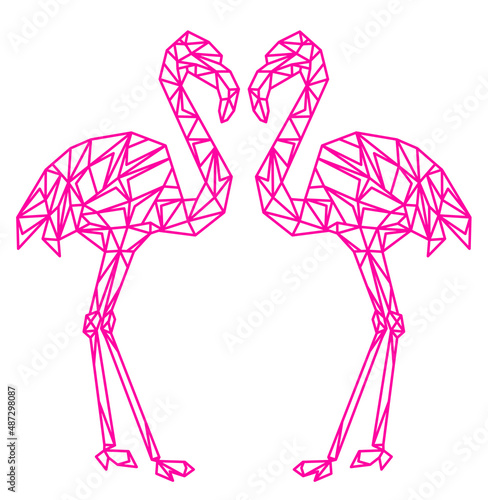 © Алена Гривенюк, Fototapeta premium Vector. Abstract geometric flamingo. Linear polygonal animal.