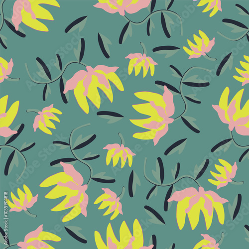 © SUGIMEN, Naklejka premium Vector abstract seamless simple floral pattern. Flower pattern. Spring pattern. Pattern for textiles or for cover. Wallpaper. Hand drawn.