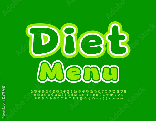 © Popskraft, Fototapeta premium Vector advertising Banner Diet Menu. Modern Green Font. Creative Alphabet Letters and Numbers set