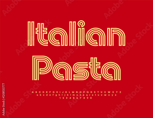 © Popskraft, Fototapeta premium Vector Advertising Italian Pasta. Exclusive Bright Font. Cool Artistic Alphabet Letters and Numbers.