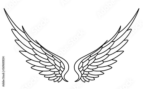 © RIko Purnomo, Fototapeta premium Vector angel wings line art design isolated