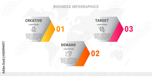 © evseev_tim, Fototapeta premium Vector arrows business infographics. Modern timeline template with three options, steps, icons. Simple graphic flowchart template
