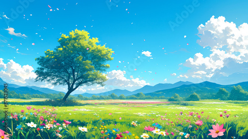 Fototapeta premium vector art beautiful flower in the garden style art anime
