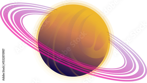 © vectorfusionart, Naklejka premium Vector art featuring planet glowing orange with magenta rings on transparent background, copy space