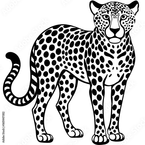 Fototapeta premium Vector art of a black and white cheetah standing tall isolated on white background
