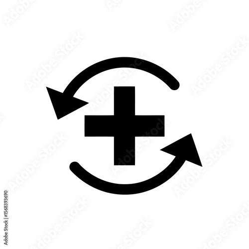 Obraz premium Vector art of a black plus sign with two curved arrows indicating a refresh...