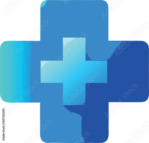Fototapeta premium Vector art of a blue plus sign icon, representing medical assistance and positive growth