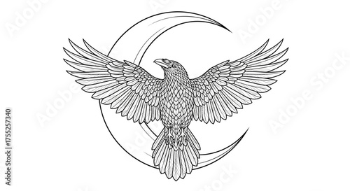 © Gabriel, Fototapeta premium Vector art of a majestic raven soars against the backdrop of a crescent moon