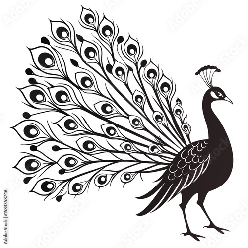 Fototapeta premium Vector art of a peacock displays its beautiful feathers isolated on white...