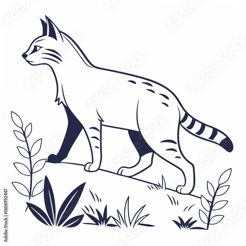 © Alamgir, Obraz premium Vector art of a stylized illustration of a cat standing amidst grass