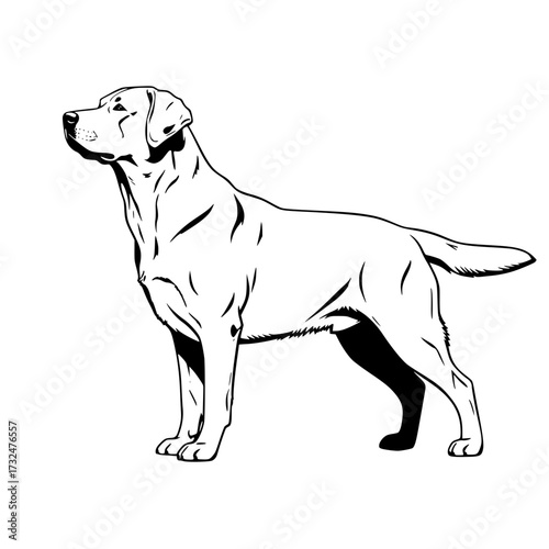 © Vectoral, Fototapeta premium Vector art of black and white line drawing of labrador retriever standing