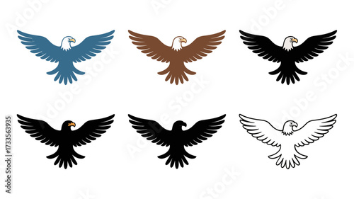Fototapeta premium Vector art of collection of eagle icons in various colors and styles