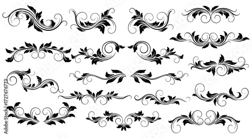 Naklejka premium Vector art of collection of hand drawn floral decorative elements for design...
