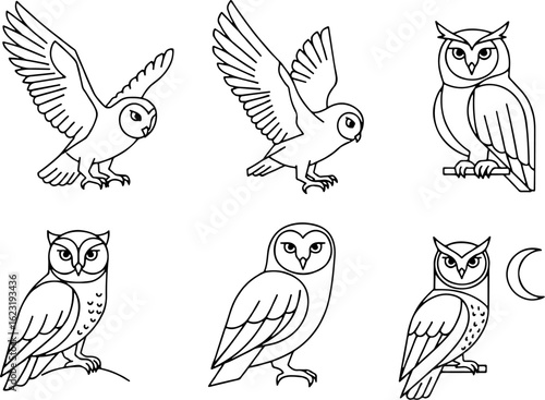 Fototapeta premium Vector art of collection of owl illustrations in various poses and styles