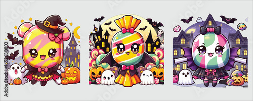 Fototapeta premium Vector art of cute halloween candy isolated on white background