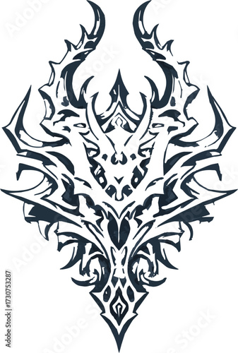© JEMEE, Fototapeta premium Vector art of fantasy tribal ornament with horns, blue and silver color, on textured background