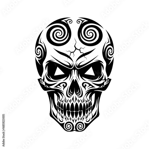 Fototapeta premium Vector art of intricate skull with spiral patterns, a detailed and macabre...