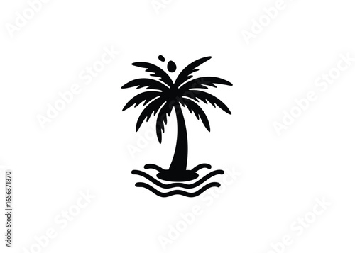 © tanbirmiah, Obraz premium Vector art of minimalist black and illustration of a palm tree wavy lines