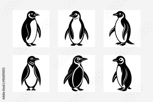 © ShuchitraRani, Fototapeta premium Vector art of penguin silhouette on a white background
