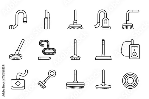 © vector house, Obraz premium Vector art of set of cleaning tools line art for design use