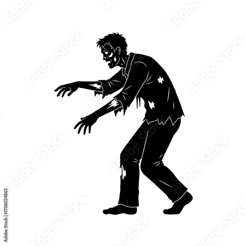 © Sumona, Fototapeta premium Vector art of silhouette of a zombie walking halloween concept with undead monster, creepy character, and spooky silhouette