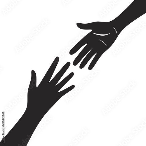 Fototapeta premium Vector art of silhouette of two hands reaching out to each other symbolizing help support and connection