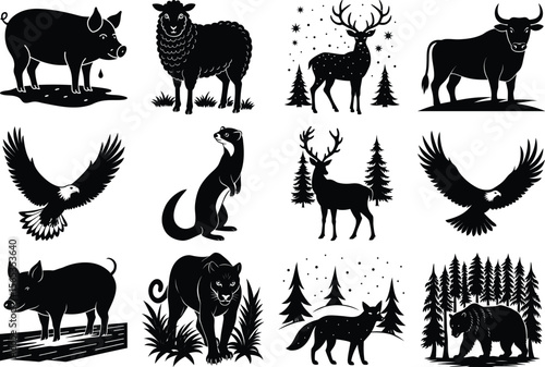 © Rabelmia, Naklejka premium Vector art of silhouettes of various animals isolated on transparent background