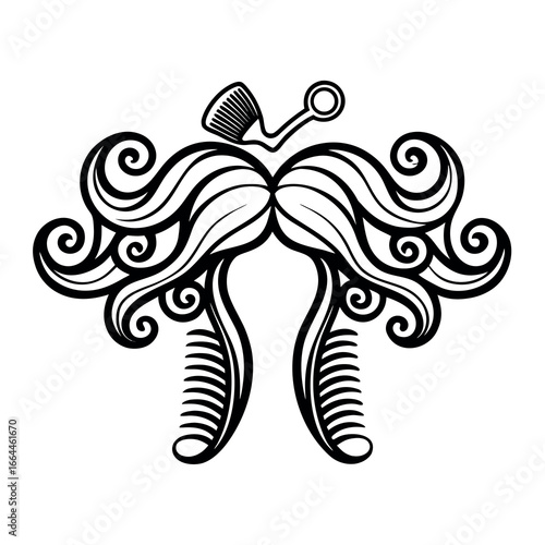 Obraz premium Vector art of stylized mustache with barber tools and combs