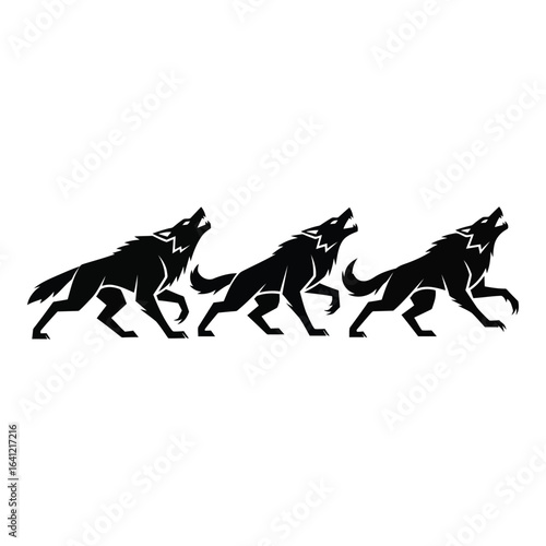 © Muhin, Fototapeta premium Vector art of three wolves howling isolated on white background