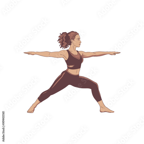© Printora Lab, Obraz premium Vector art of Woman in warrior two yoga pose isolated on white background