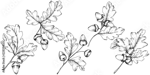 Fototapeta premium Vector autumn oak leaves. Leaf plant botanical garden floral foliage....