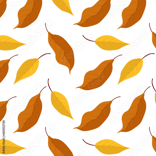 © Елена Мотрич, Obraz premium Vector autumn pattern with yellow and orange leaves. Great element for autumn, nature, plant concept and design projects.