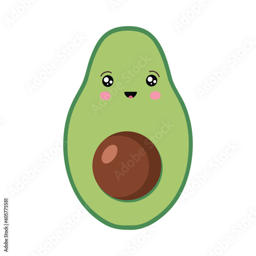 Fototapeta premium Vector avocado icon in kawaii style. Avocado fruits in a flat design. Vector